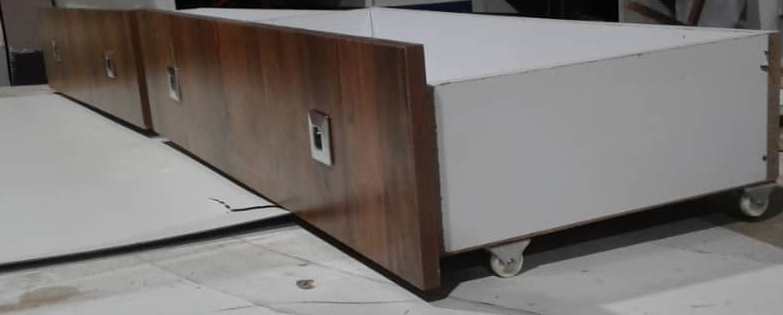 کلیه محصولات تخت خواب فلزی تولید شرکت دیاکوصنعت قابلیت نصب کشو در زیر تخت را دارا میباشد این کشو ها دارای ریل های ساچمه ای سه تیکه میباشد و کاملا فلزی میباشد.